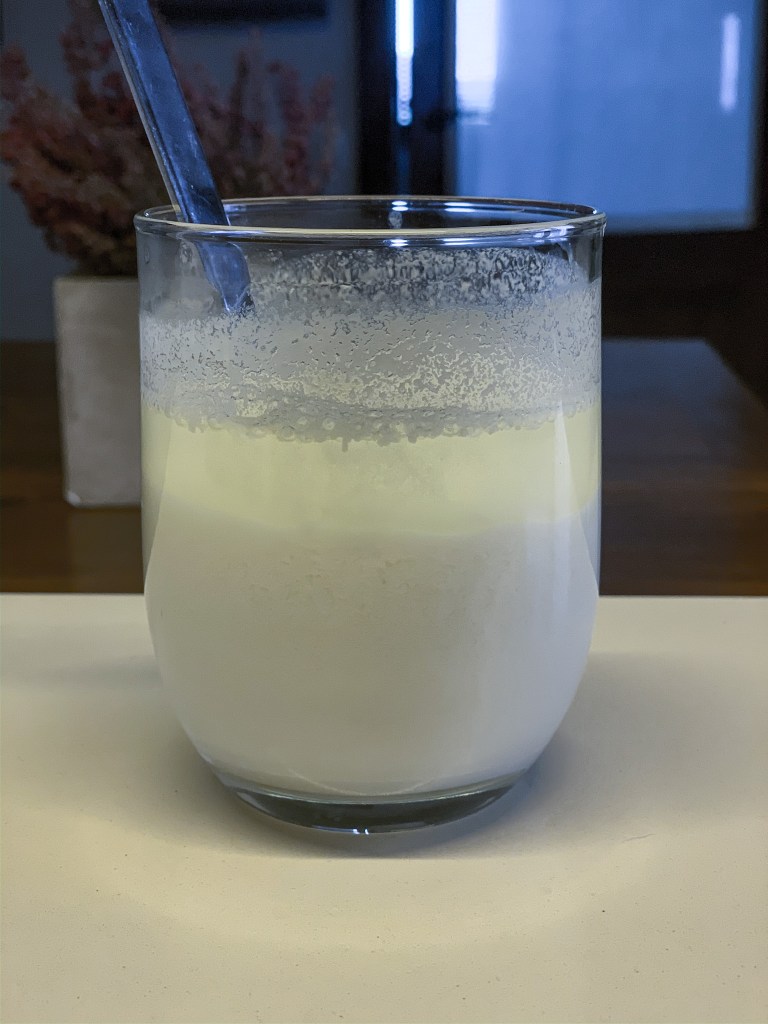 Si en el supermercado no encoramos el famoso suero de leche, es muy fácil hacerlo en casa. Solo necesitamos un vaso de leche y vinagre para poder cortarla.
