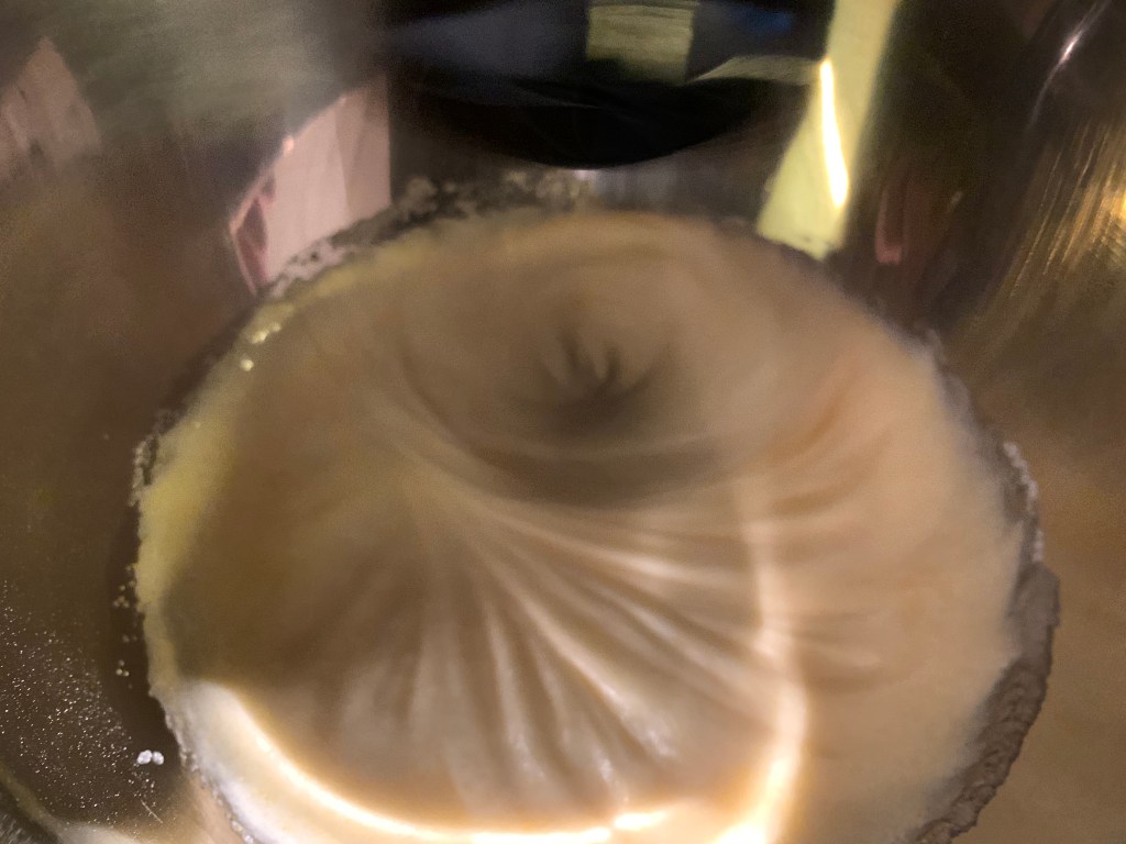 Mezclar lo suficientemente hasta que este todo integrado. al llevar impulsor químico si batimos más de lo necesario perderemos la fuerza del impulsor y el pastel no crecerá en la horneada . Así que una vez veamos que todo este bien integrado NO BATIR MÁS.